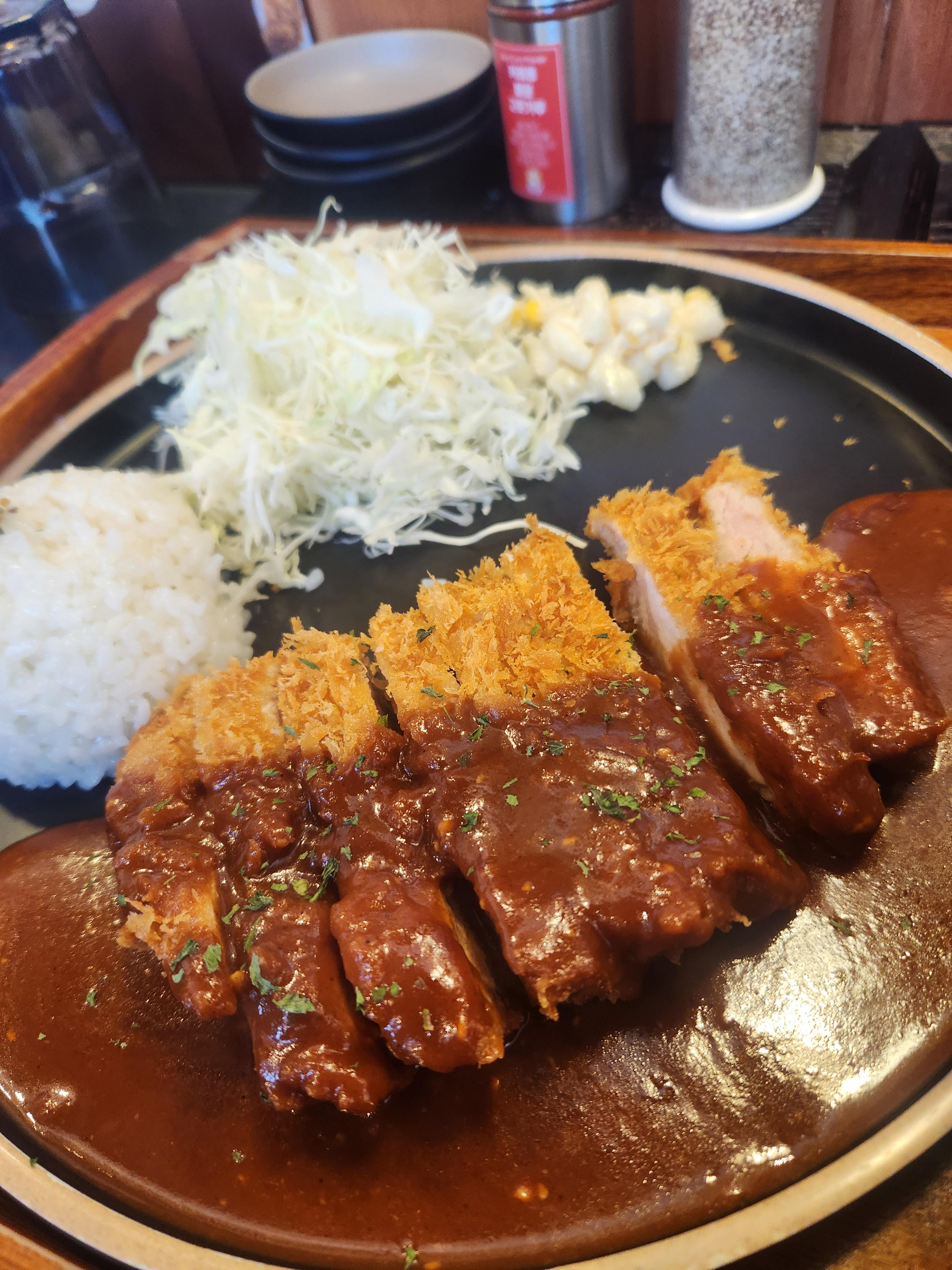 돈까스 그릇이 커서 비어보이는 공간이 있어 양이 좀 작아 보일 수 있는데요.