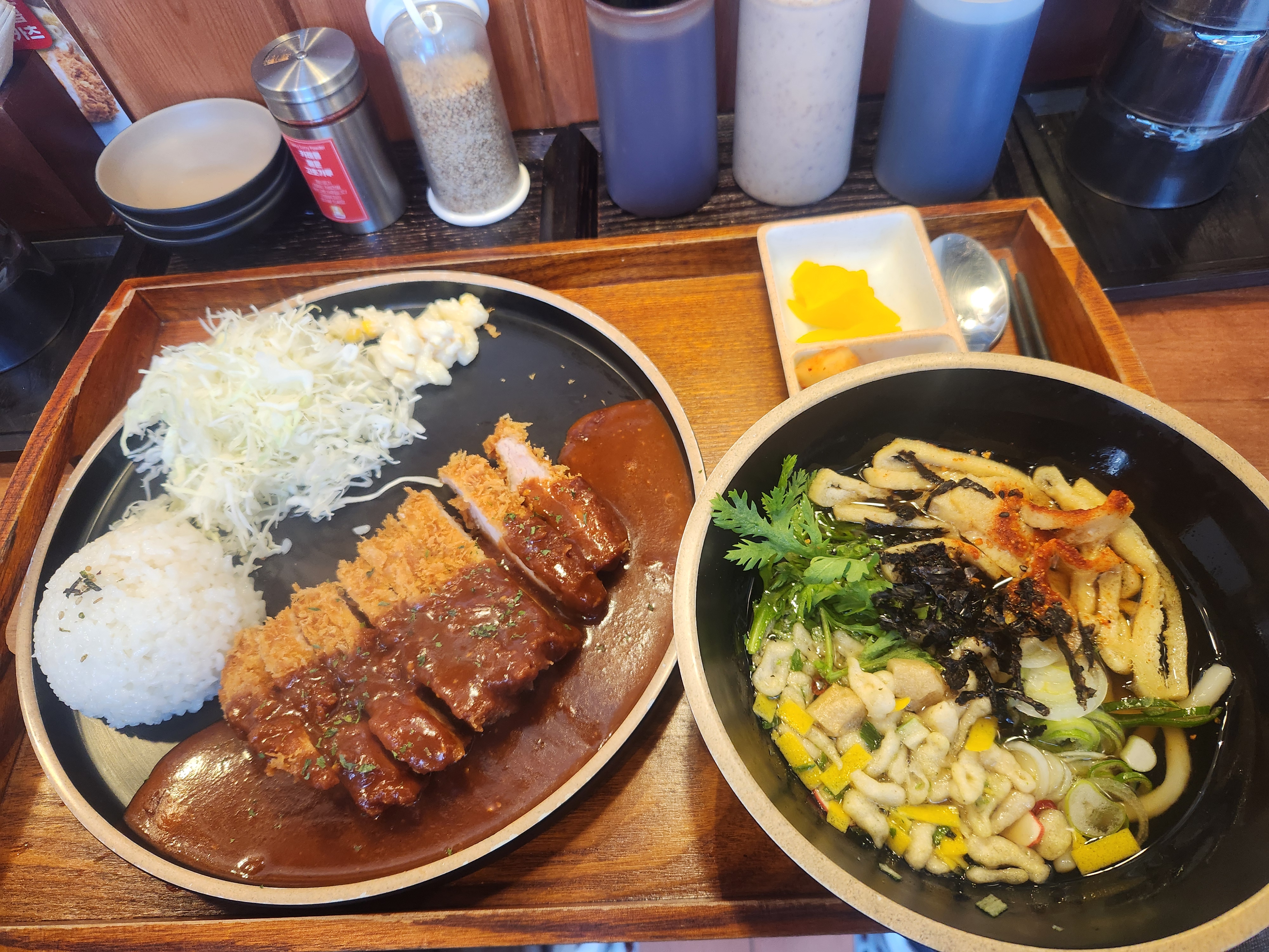 전 경양식 돈가스에 우동 추가 했습니다.