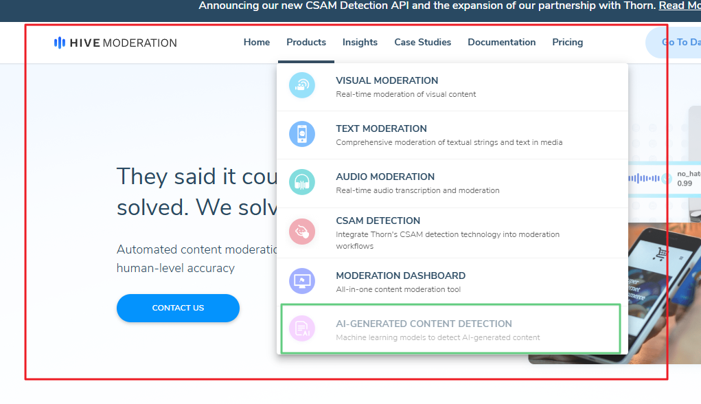 우선 홈페이지 Products > AI-GENERATED CONTENT DETECTION으로 이동해 주세요.
