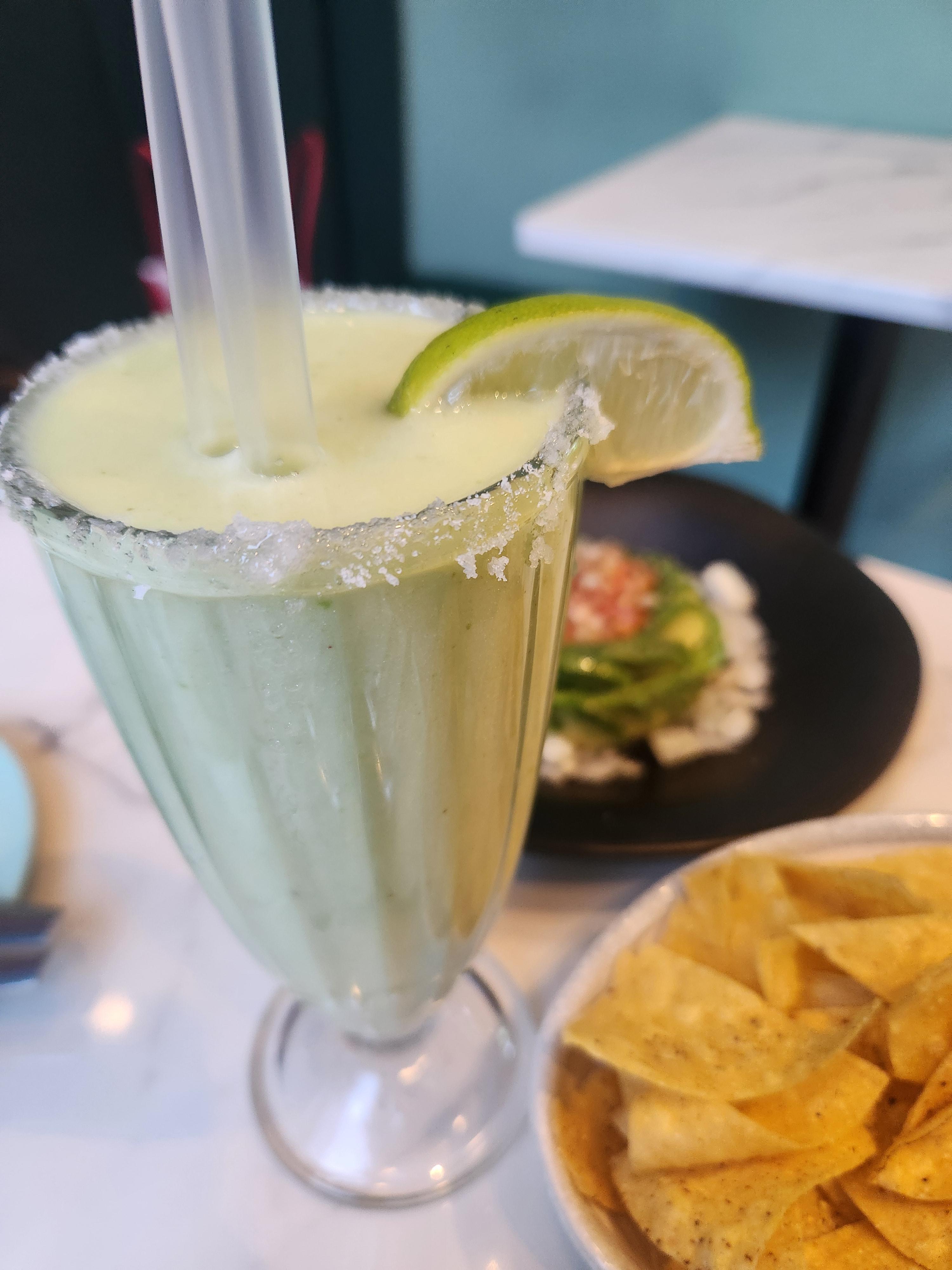 아보리타는 강한 마가리타의 술맛에 부드러운 아보카도가 더해진 맛이었습니다.