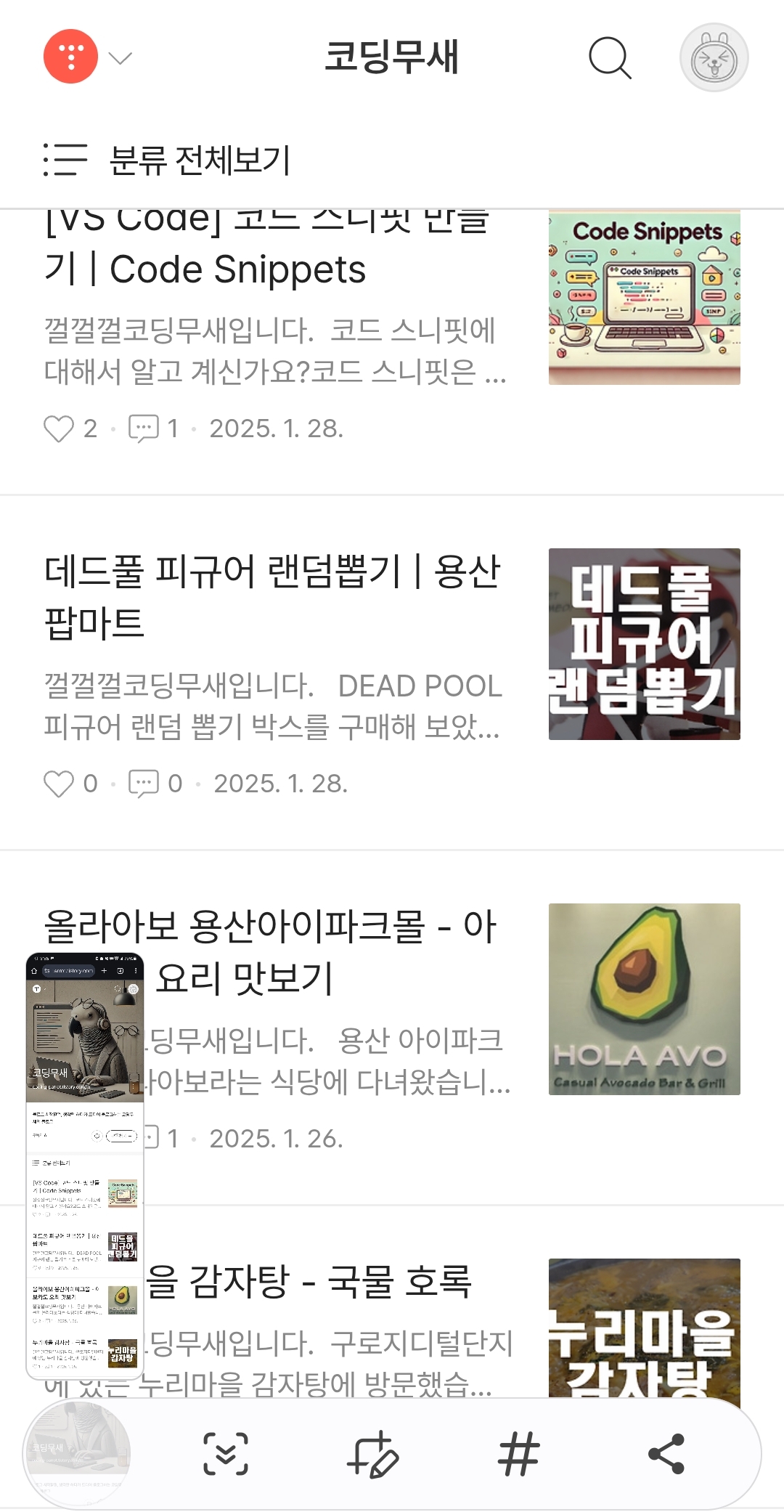 그럼 바로 스크롤을 내리면서 다음 스크린샷을 찍어 붙여줍니다.
