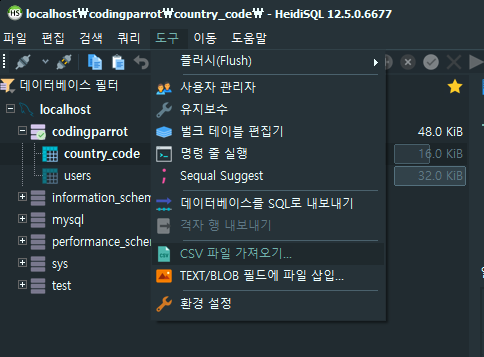 HeidiSQL - CSV 데이터 삽입