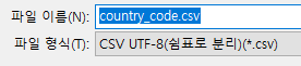 저장할 파일은 국가 코드표입니다.