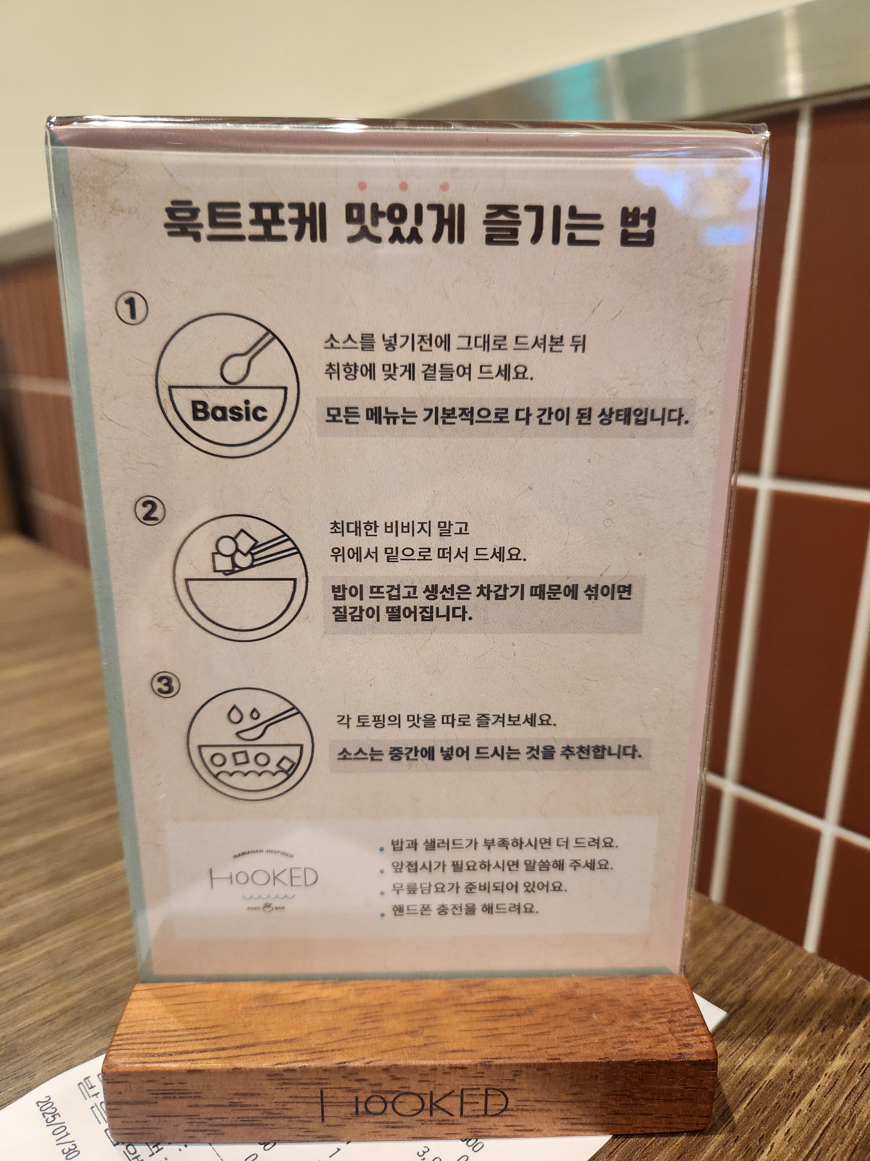 테이블엔 포케를 맛있게 즐기는 법 가이드가 있네요.