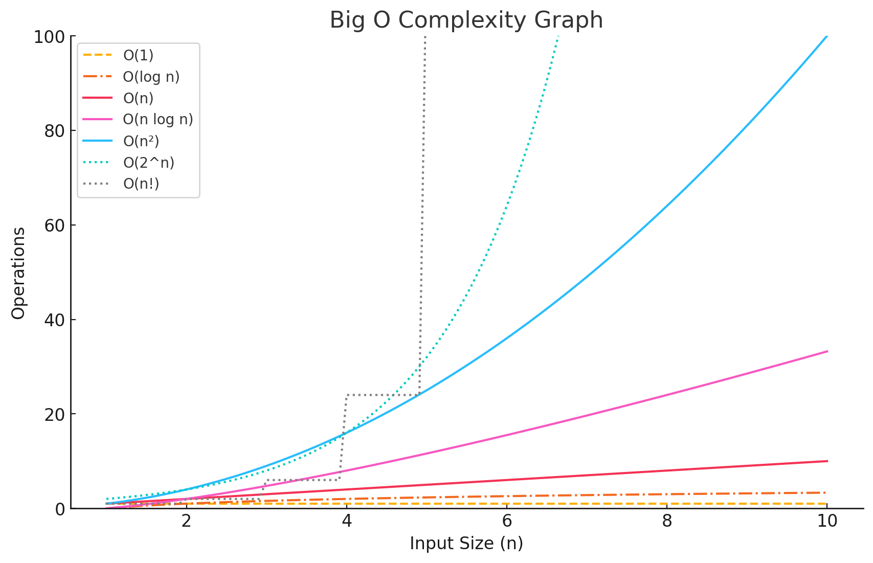 시간 복잡도는 입력 크기에 따라 알고리즘이 실행되는 연산 횟수를 수학적으로 분석하는 개념이라고 생각해 주시면 됩니다. 입력 크기가 증가할 때 실행 시간이 어떻게 변하는지를 분석하는 것이죠.